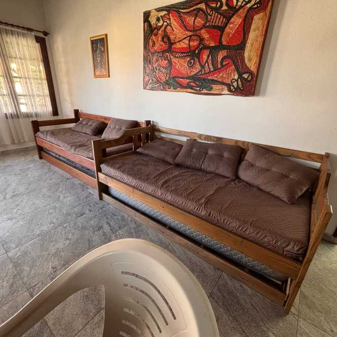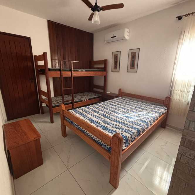 • 2 quartos, sendo uma suíte, com uma cama de casal e duas de solteiro em cada. Com acomodação para 4 pessoas em cada quarto e mais 4 na sala com 2 sofá camas com auxiliar;